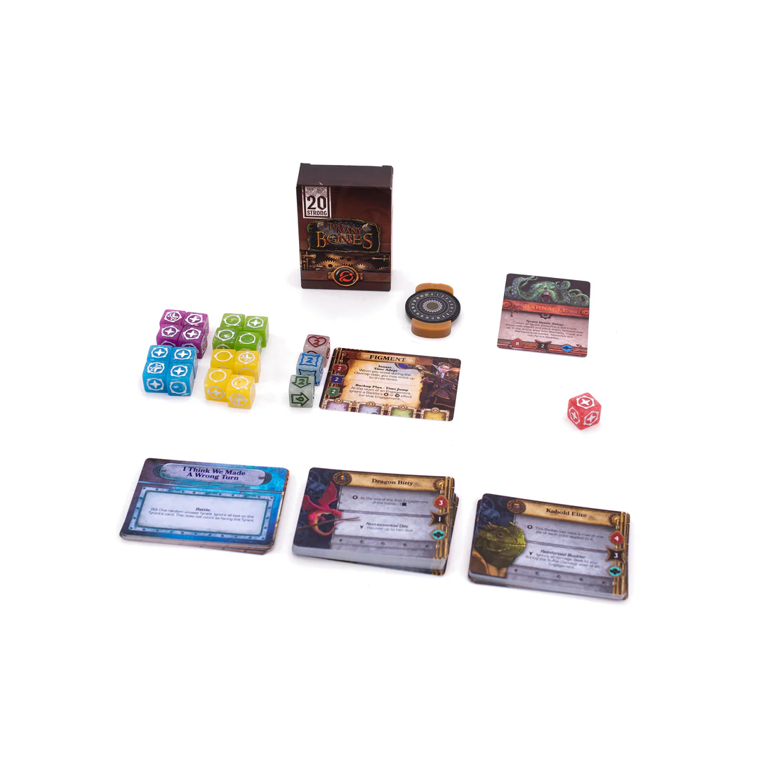 Verhoog de uitdaging met lef, tactiek en dice‑management in een compacte vorm. Too Many Bones: het ultieme solo‑snack‑avontuur dat je overal mee kunt nemen.