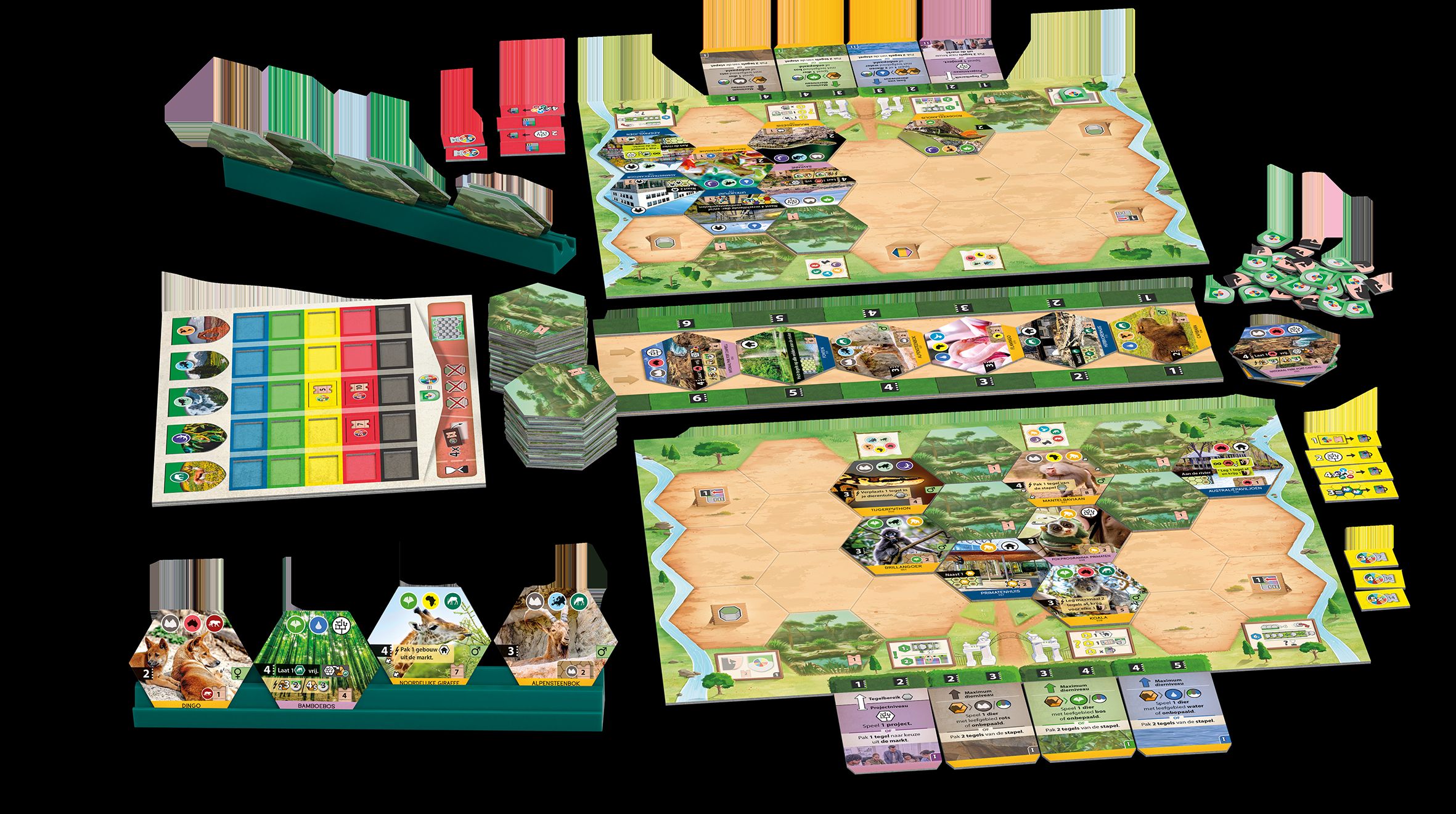 Dierenrijk is een modern, thematisch bordspel afgeleid van Ark Nova waarin jij de leiding krijgt over een ambitieuze dierentuin die zich richt op dierenwelzijn, educatie en natuurbehoud. Het spel combineert strategische keuzes, slimme planning en een vleugje puzzelen tot een unieke ervaring die elke keer anders verloopt. Dankzij de grote variatie aan tegels, dieren en projecten voelt ieder potje fris en uitdagend aan, en kun je telkens nieuwe strategieën ontdekken.