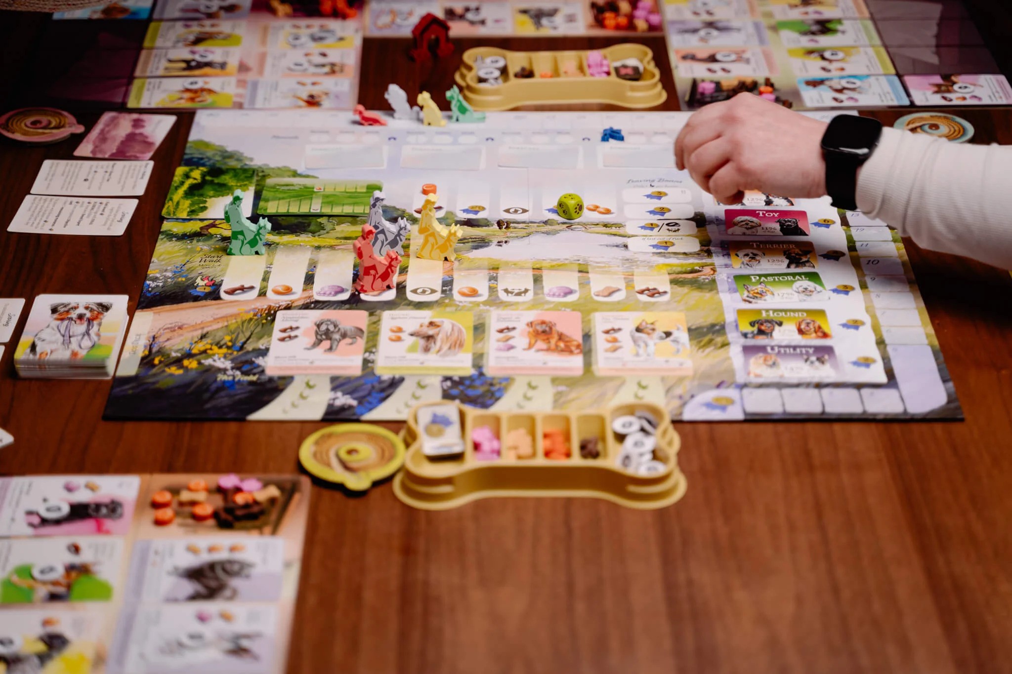 Dog Park van Birdwood Games is een prachtig vormgegeven bordspel waarin spelers de rol van hondenuitlaters aannemen en proberen om de meest succesvolle wandelingen te maken. Wat meteen opvalt is het mooie artwork en de liefde voor detail in de vormgeving van de hondenkaarten. Elk hondenras heeft zijn eigen unieke kenmerken, wat niet alleen een speelse variatie brengt, maar ook strategische diepgang toevoegt.