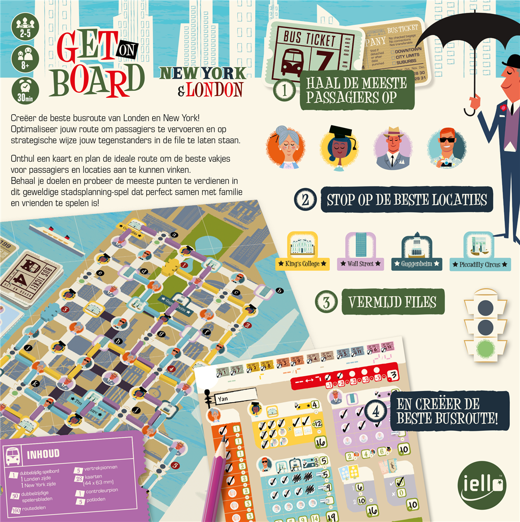 Neem de rol aan van een slimme stadsplanner in Get On Board: New York & London, een strategisch bordspel waarin je de meest efficiënte busroutes door twee wereldberoemde steden moet uitstippelen. Slim plannen, tactisch rijden en zoveel mogelijk passagiers vervoeren is de sleutel tot succes!