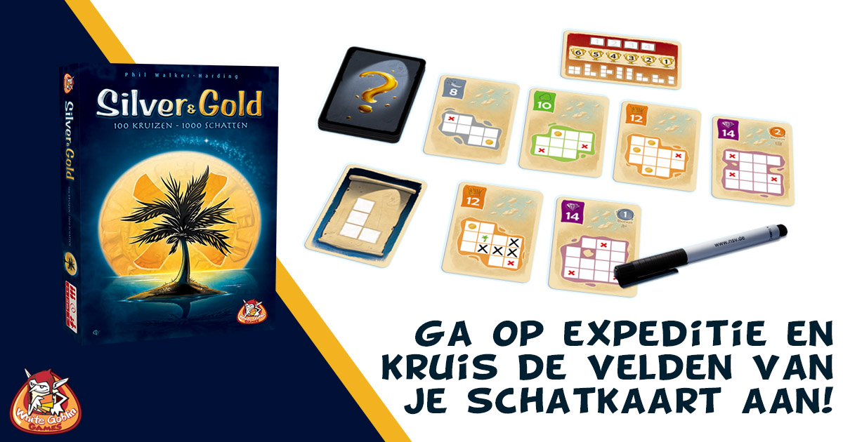 In Silver & Gold ben je op afgelegen eilanden, goudschatten… wie heeft er nog nooit van gedroomd? Dit alles en nog veel meer zit allemaal in dit geweldige familiespel! Eenvoudige regels, vlot spelverloop, geluk, planning en spanning, succes op succes wanneer je de ene na de andere schatkaart voltooit.