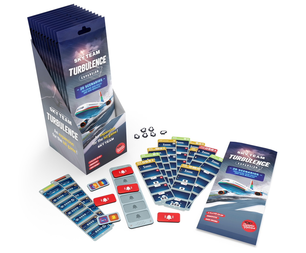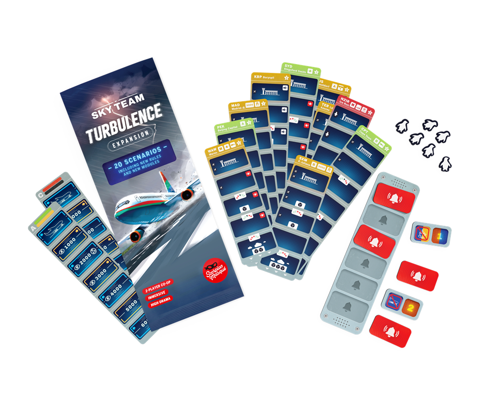 Deze spannende uitbreiding voor Sky Team voegt een geheel nieuwe dimensie toe aan het coöperatieve vliegavontuur. Met onvoorspelbare weersomstandigheden, technische storingen en uitdagende luchthavens test Turbulence je vaardigheden als piloot en co-piloot tot het uiterste. Kun jij onder extreme druk een veilige landing maken?