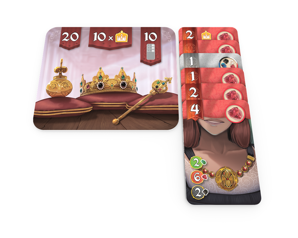 Tijdens je beurt kies je edelsteenfiches van het bord of gebruik je de fiches die je al hebt om juweelkaarten te kopen. Maak slim gebruik van privilege-rollen waarmee je een edelsteen- of parelfiche naar keuze van het bord kunt pakken. De juweelkaarten leveren je prestigepunten en kronen op, die je nodig hebt om te winnen. Bovendien bieden deze kaarten speciale voordelen en bonussen die het makkelijker maken om in de toekomst juweelkaarten te kopen.