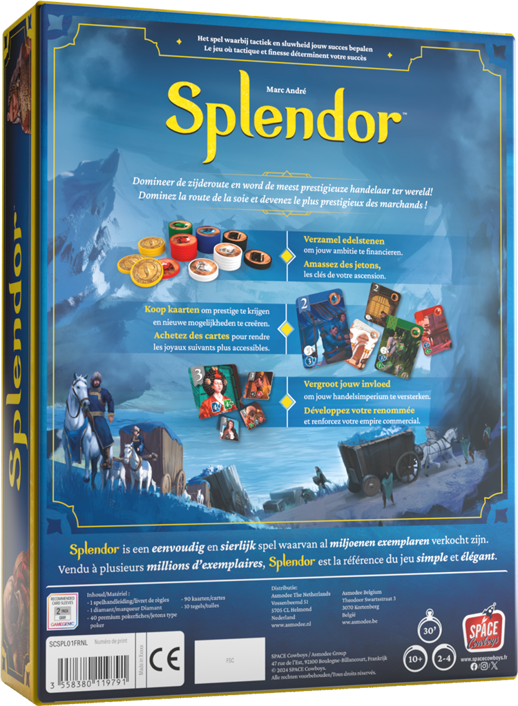 Herontdek de wereld van de diamantenhandel met Splendor Refresh. Geniet van het vertrouwde spel, nu met een prachtige nieuwe uitstraling, een verbeterd regelboek, nieuwe edele tegels en opgefriste kaarten. Perfect voor gezinnen die samen een spannende uitdaging willen aangaan!