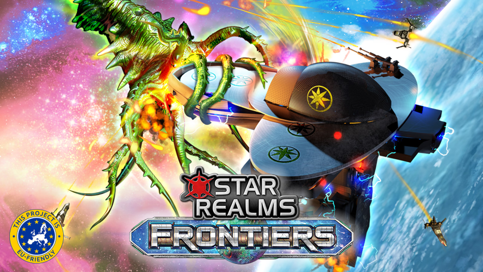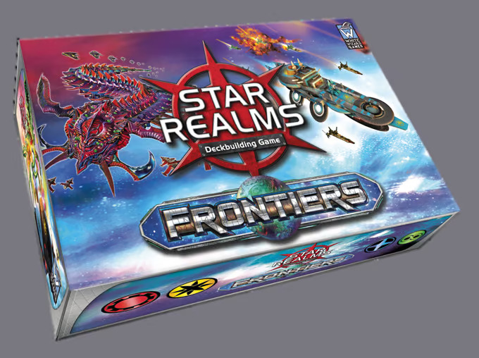 Star Realms: Frontiers is een zelfstandig speelbare versie van het populaire deck-building kaartspel Star Realms, waarin spelers hun ruimtevloot opbouwen en epische gevechten voeren. In dit sciencefiction-universum draait alles om het slim beheren van je deck, het kopen van nieuwe schepen en bases, en het vernietigen van je tegenstanders. Frontiers introduceert nieuwe kaarten, meer strategische mogelijkheden, en biedt opties voor zowel solospelers als multiplayer coöperatieve en competitieve gevechten. Je kunt het spel combineren met de basis van Star Realms.